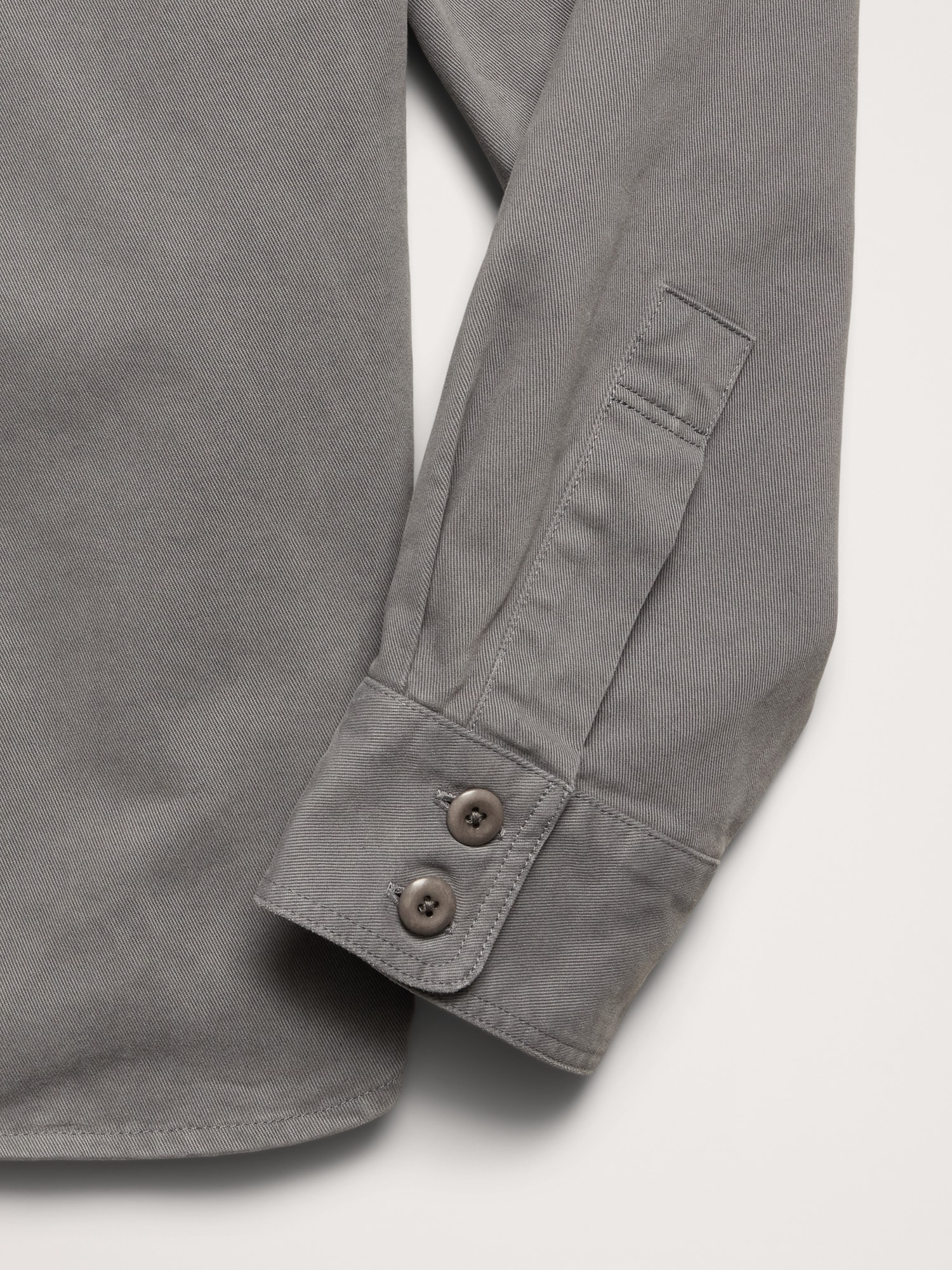 • Point collar with button-front closure.