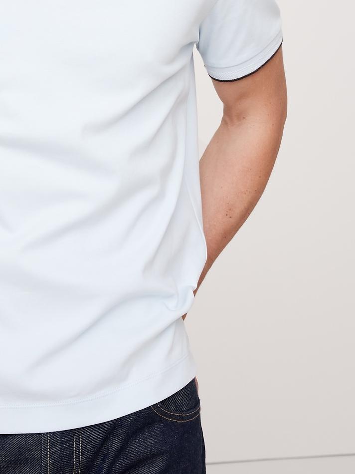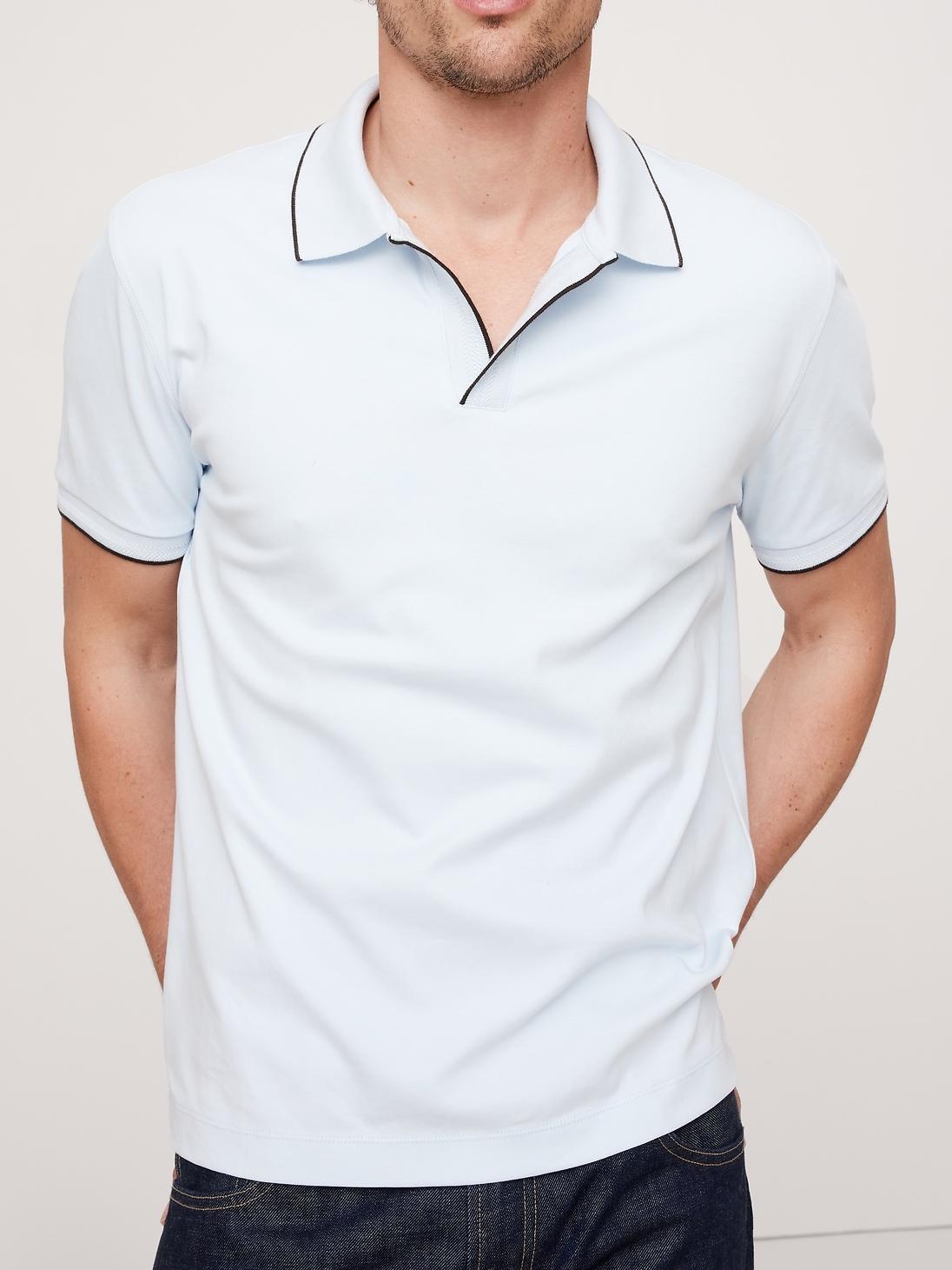 - This classic polo is cut from our cotton fabric—beloved for its signature softness and a smooth finish that leans more dressed-up in appearance. Here, we added a contrast color at the collar and cuffs.