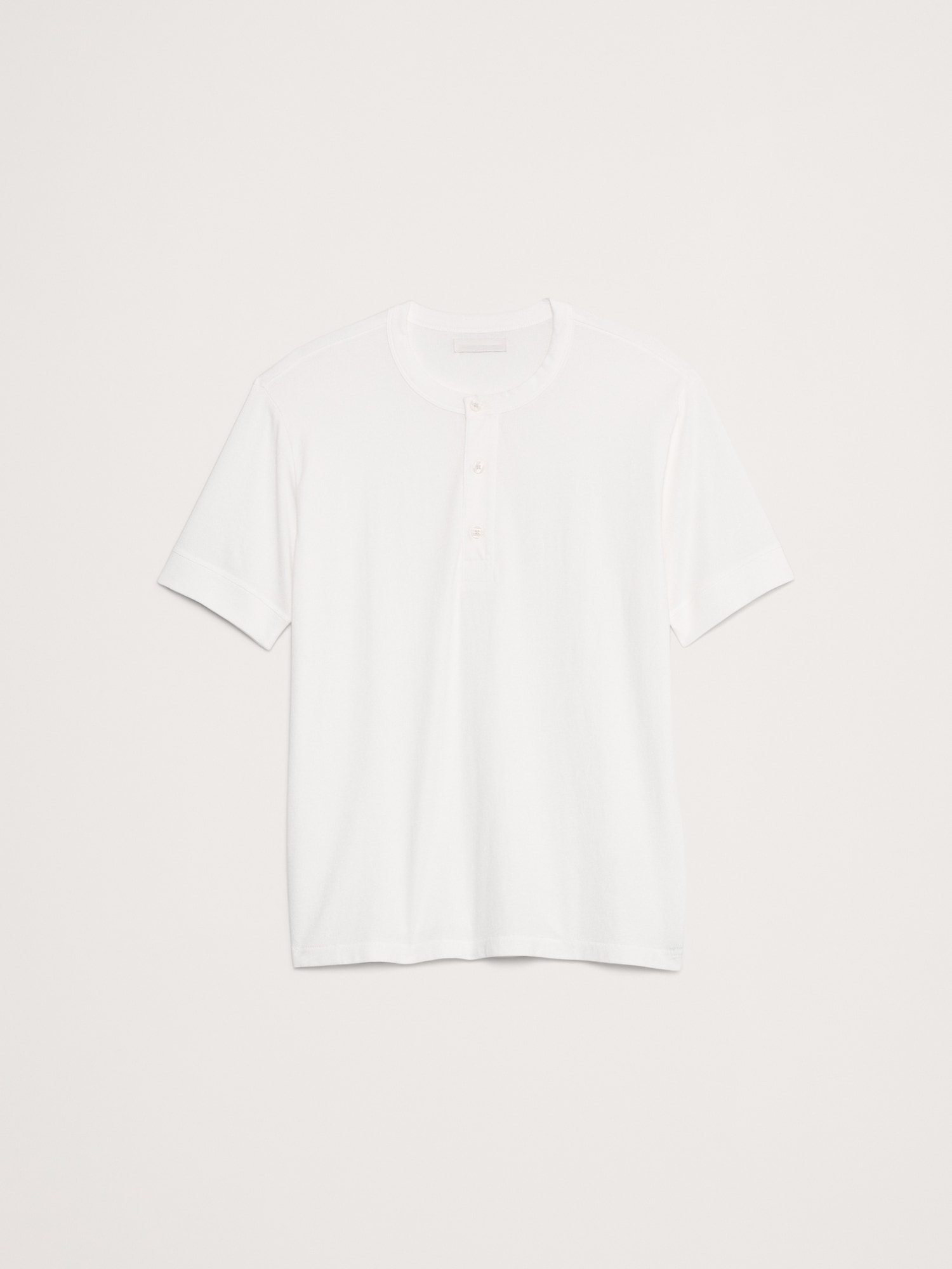 - A classic henley-style neckline meets our jersey, beloved for its organic cotton composition and special garment wash that produces an already-loved softness.